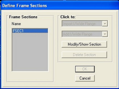 Sélectionnez Define et frames sections puis Import/Wide flange pour importer une section prédéfinie dans la bibliothèque du SAP2000 ou