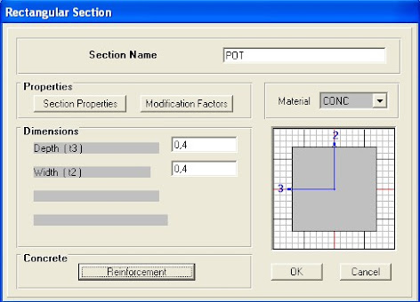 La fenêtre suivante apparaît, vous devez préciser pour chaque section le nom dans Section name, le type du matériau dans Material Sélectionnez le matériau MAT pour le béton et les dimensions